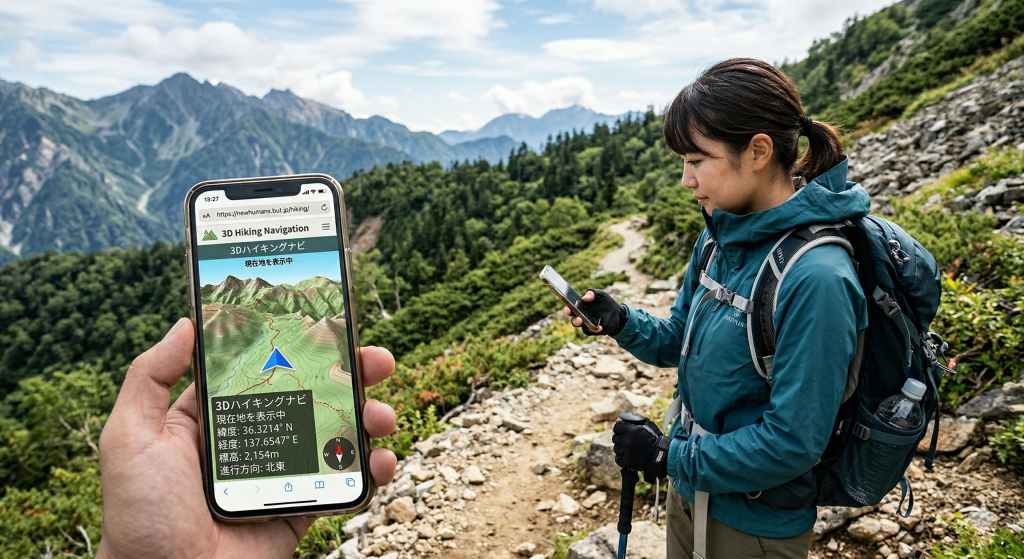 登山やハイキングの安全性を支えるサブ的ツールです。特に「標高」や「緯度経度」がパッと視覚的にわかる3Dナビゲーションは、現在地をロストしやすい山中ではちょっとした安心材料になるかと思います。